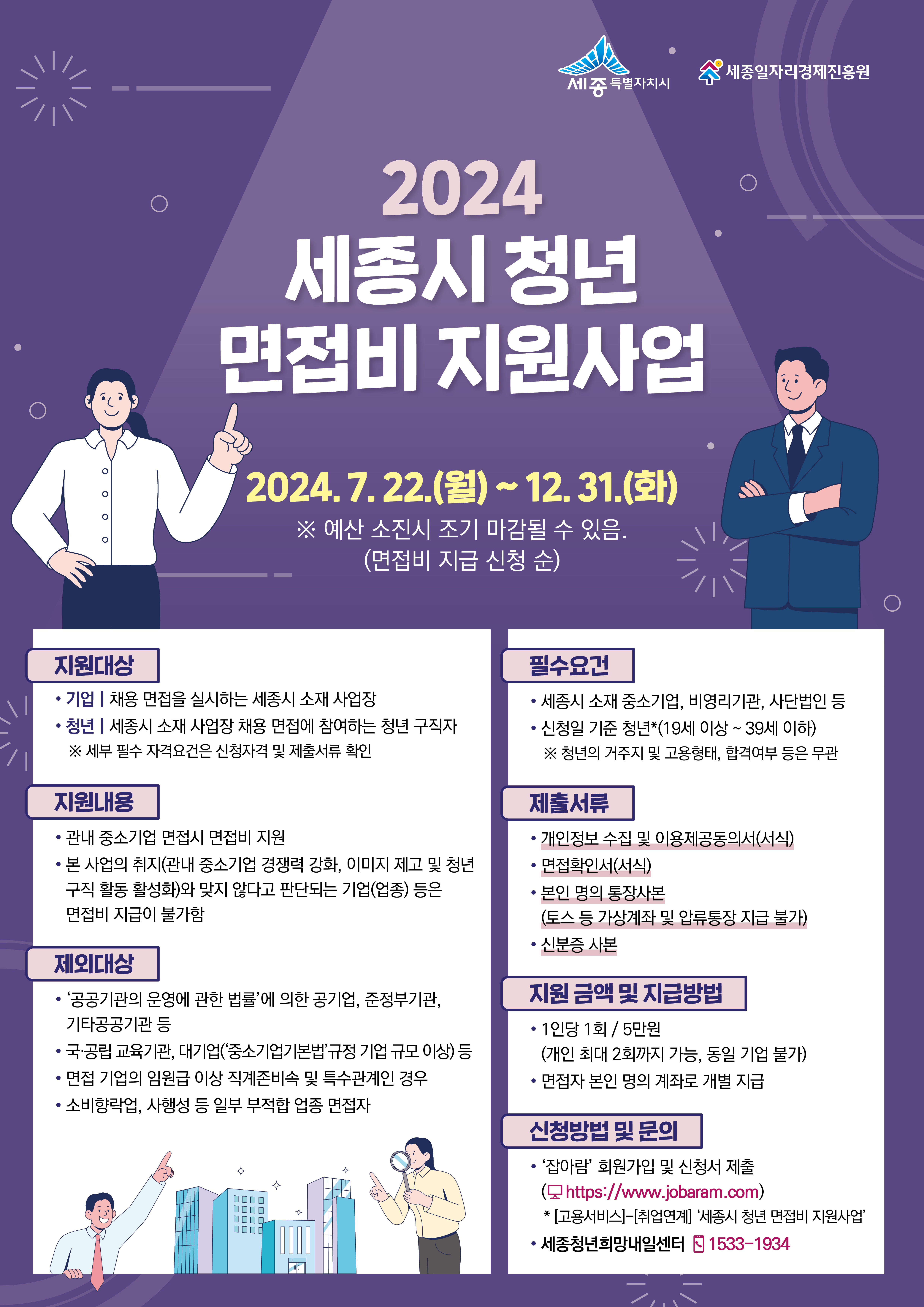 2024년도 세종시 청년 면접비 지원사업 참여기업 및 참여자 모집 (사업신청)