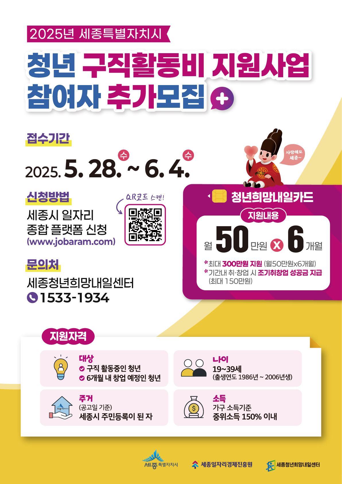 2025년 세종시 청년 구직활동 지원사업 추가모집 수정공고(마감)