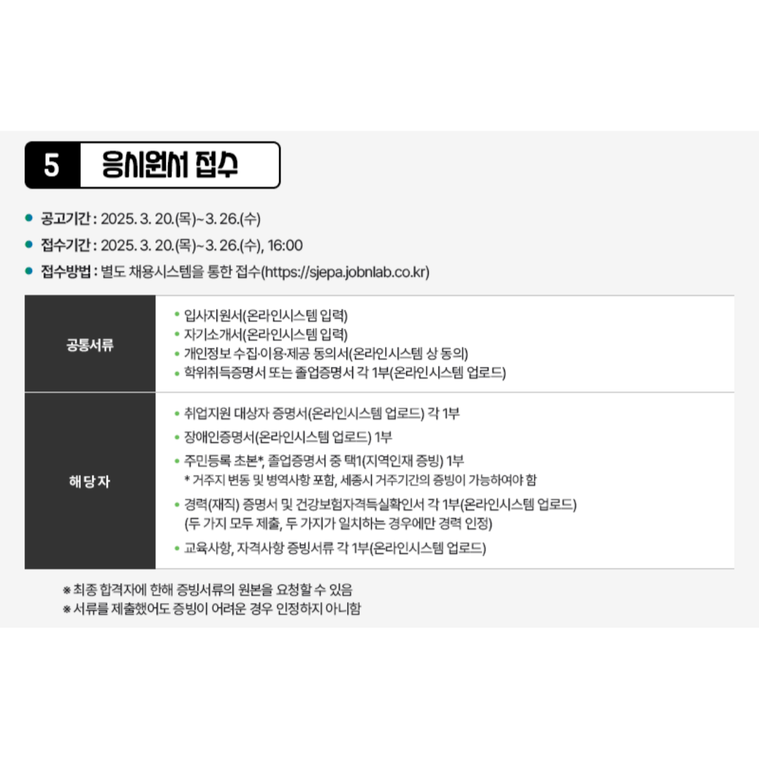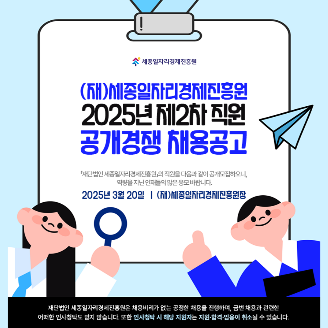 세종일자리경제진흥원 2025년 제2차 직원 공개경쟁 채용공고 관리자 2025.03.24 조회수 427 ※ 이미지를 클릭하시면 채용 신청 홈페이지로 이동합니다 ※ 첨부파일 001.png 303.4 KB 002.png 341.1 KB 003.png 281.1 KB 004.png 255.2 KB 005.png 433.7 KB 006.png 253.6 KB 007.png 207.4 KB 008.png 321.6 KB 009.png 527.4 KB 010.png 425.1 KB 전체 다운로드 목록