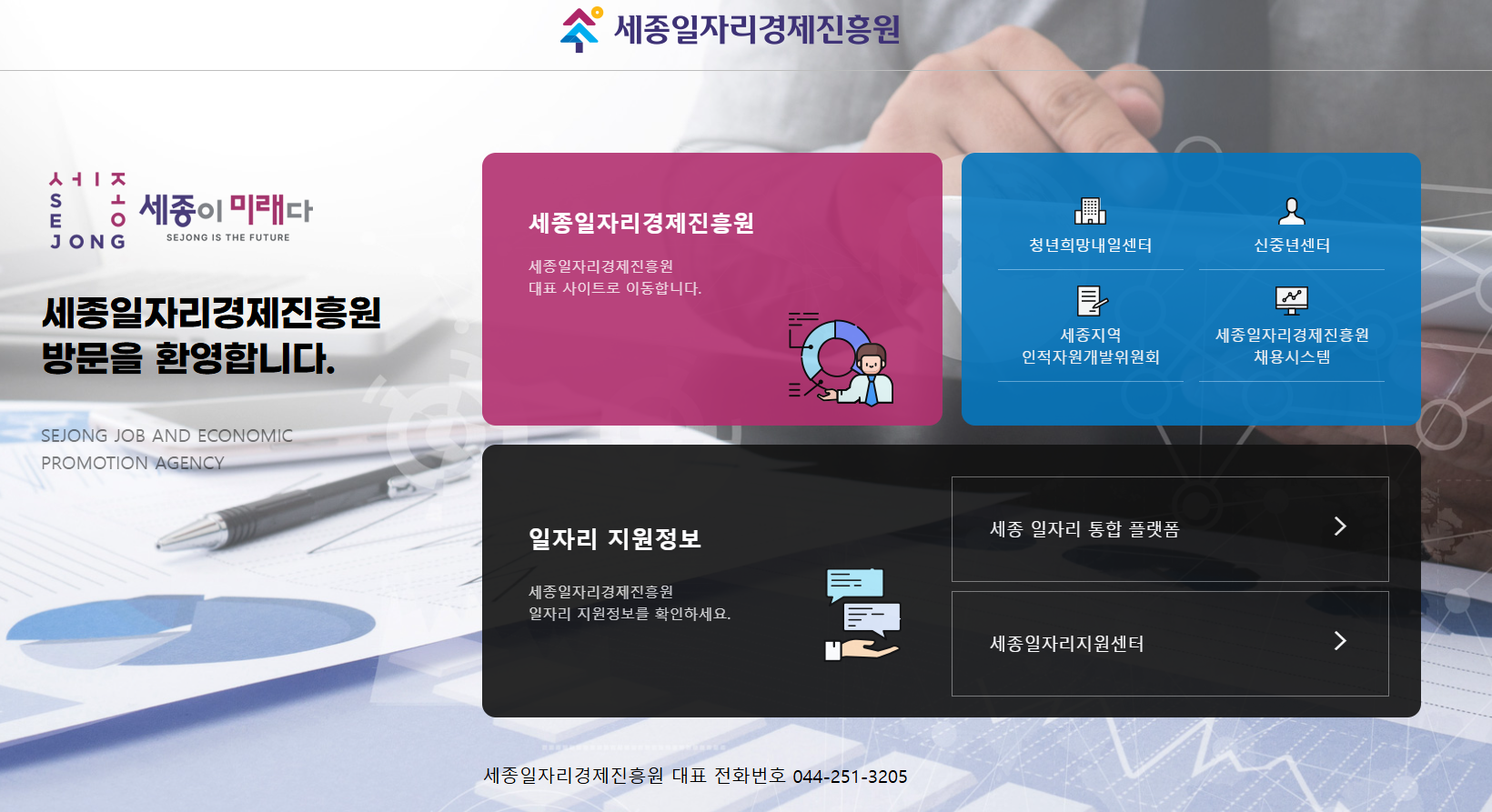(재)세종일자리경제진흥원 공식 누리집 정식 서비스가 시작되었습니다.