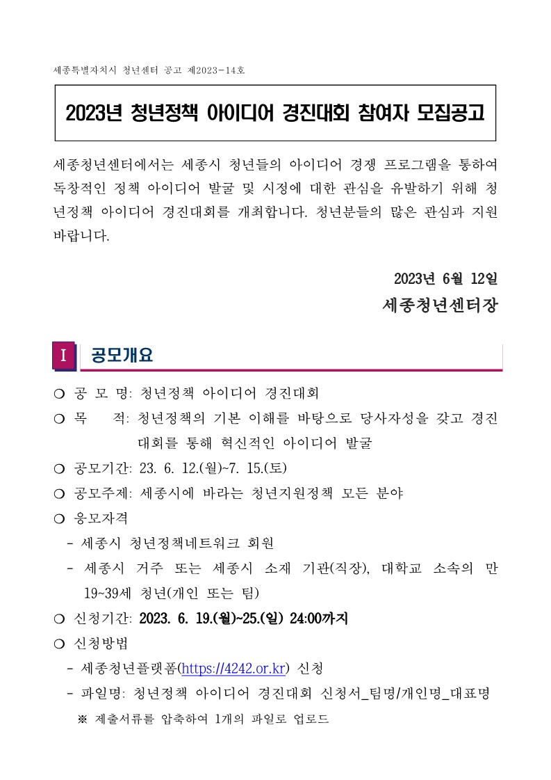 2023 청년정책 아이디어 경진대회 참여자 모집