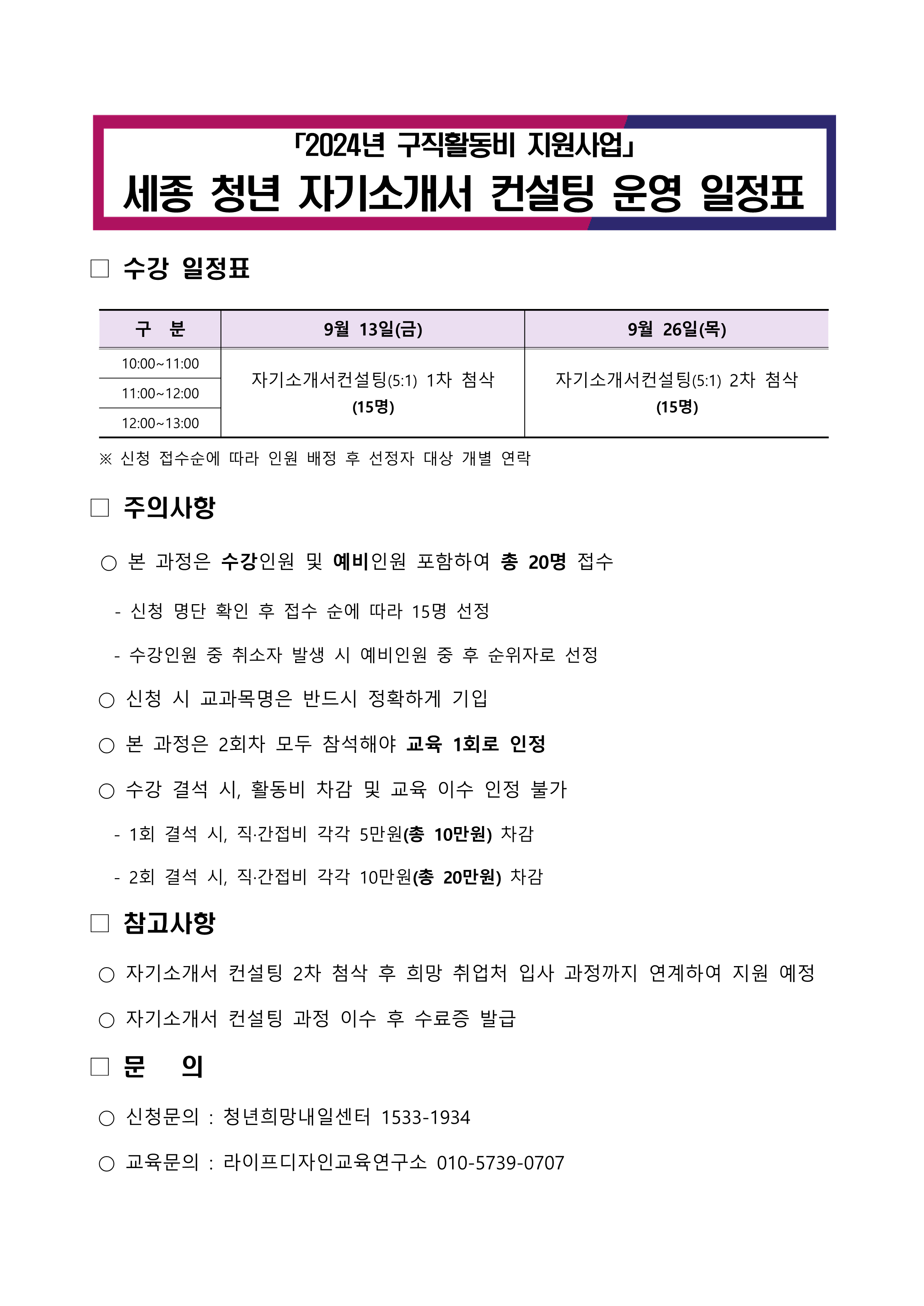 2024년 구직활동비 지원사업 자기소개서 컨설팅 과정 운영